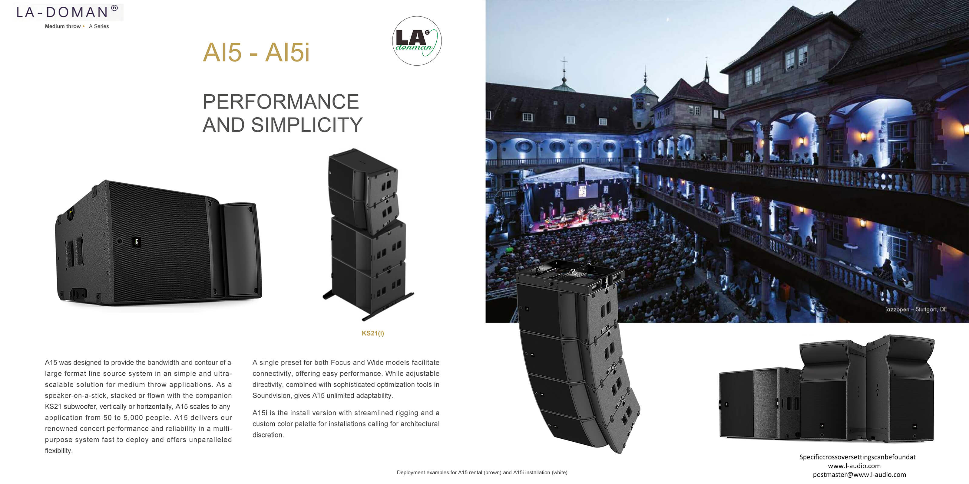 •    Configuration: Medium-throw loudspeaker, 2-way passive, single 15″ LF
