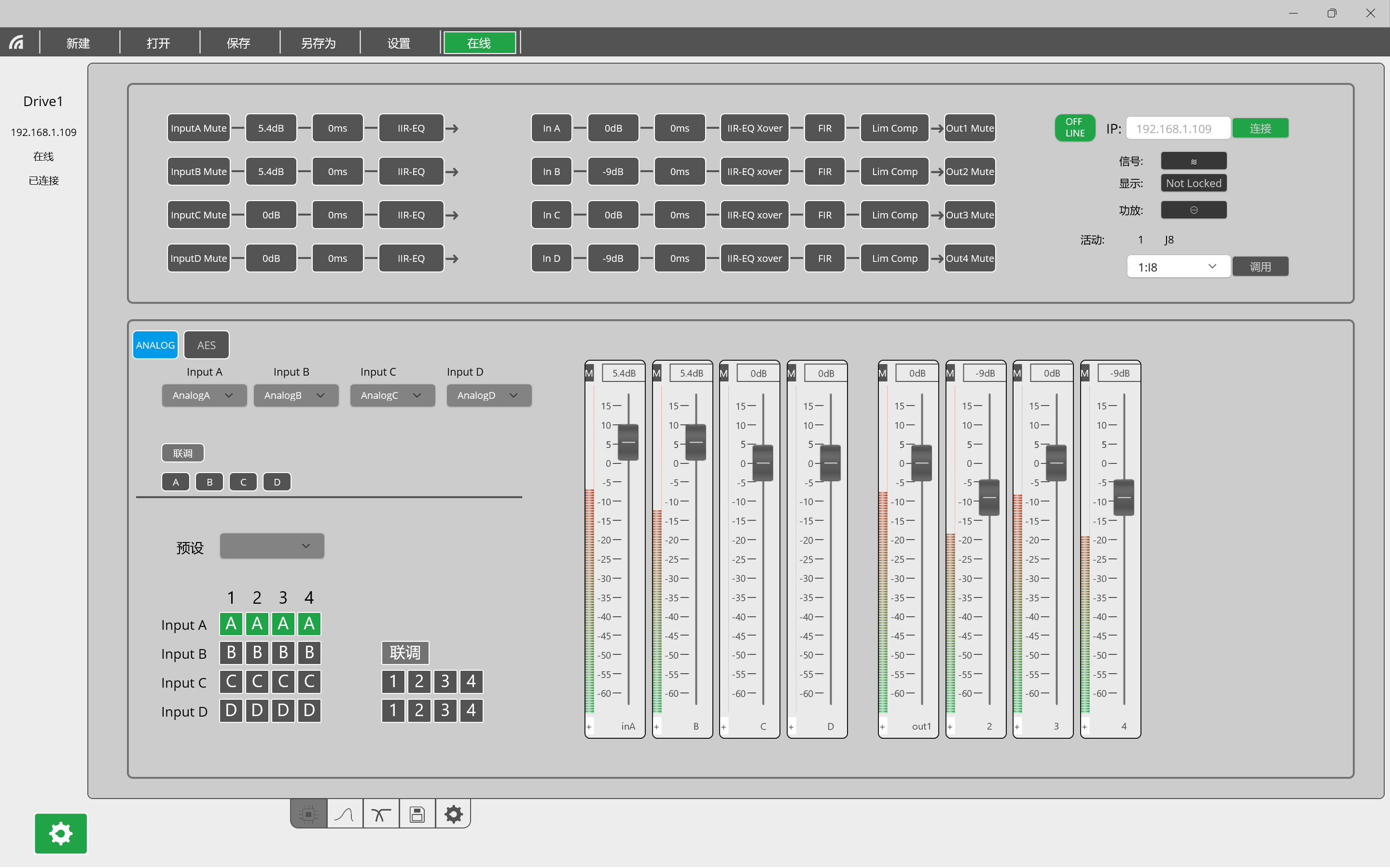 •    DSP & Processing: 96 kHz, 32-bit floating point; FIR + IIR filters, delay, limiters, loudspeaker presets